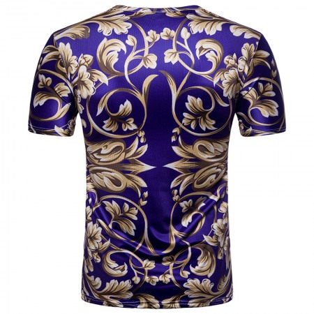 New Summer Men's Personality Simple Casual Local Gold Short-Sleeved V-Neck Bright Printing Mens T-Shirt