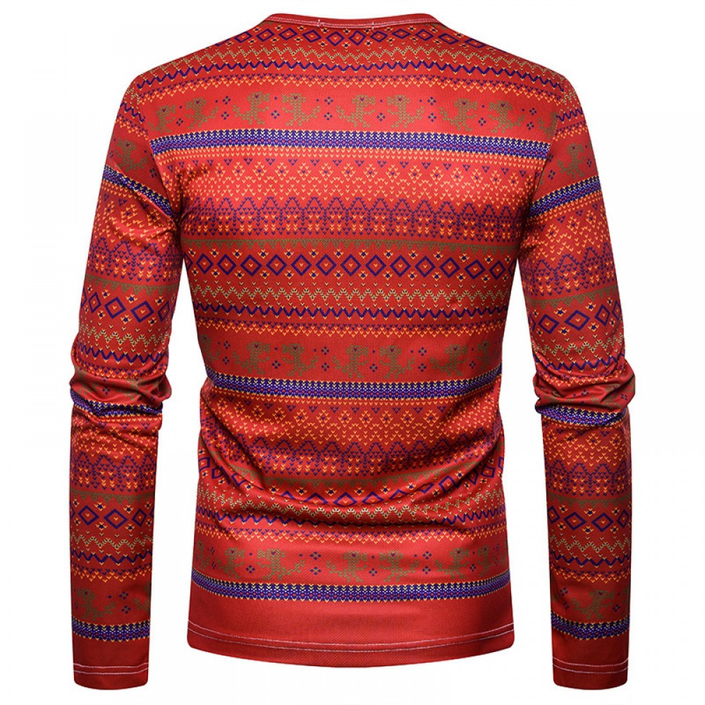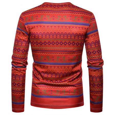Men's Personality Clan Style Print Round Neck Long Sleeve T-Shirt