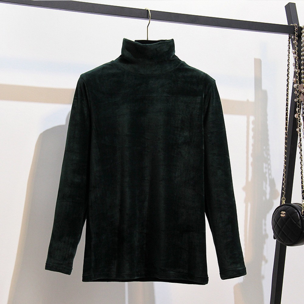 New Long-Sleeved T-Shirt Fat Large Size Women's Gold Velvet High-Neck Bottoming Shirt