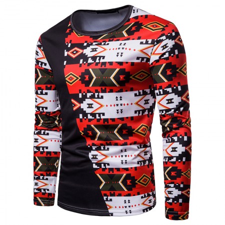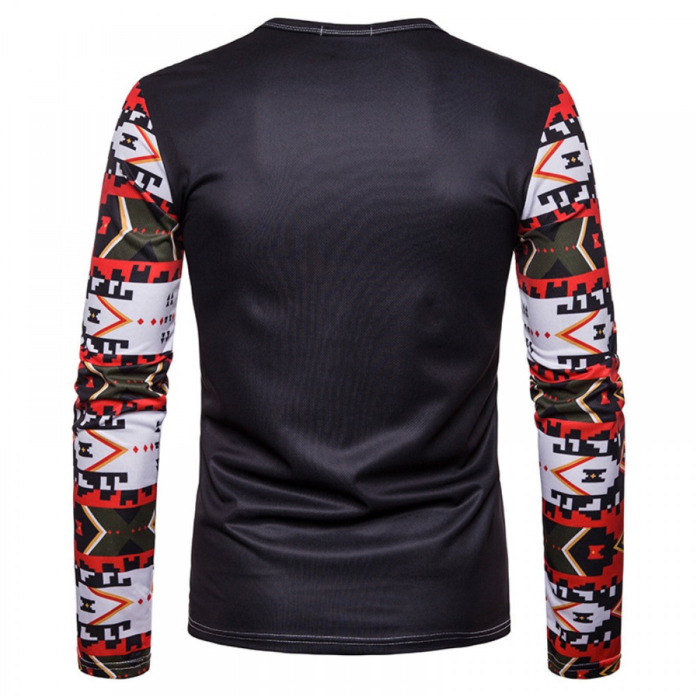 New Style Men's Fashion Hit Color 3D Digital Printing Long Sleeve Round Neck T-Shirt