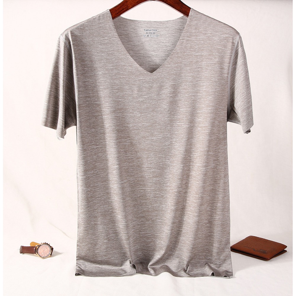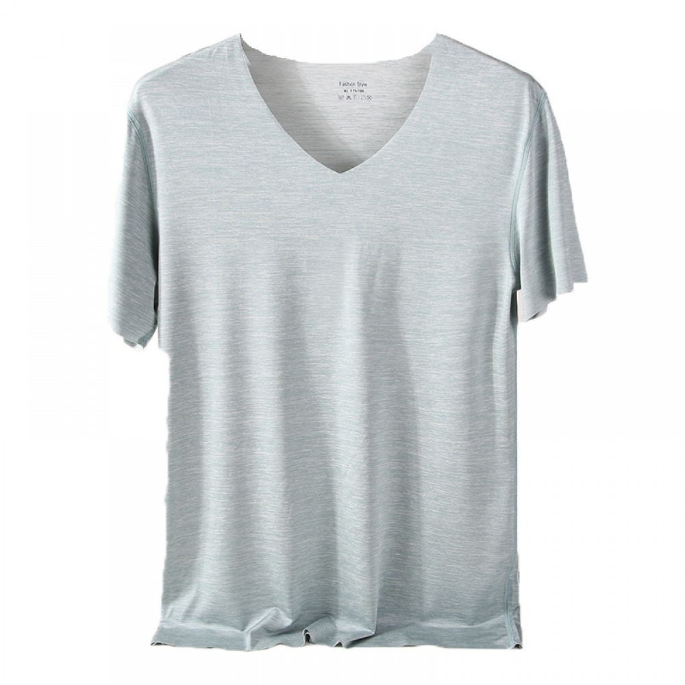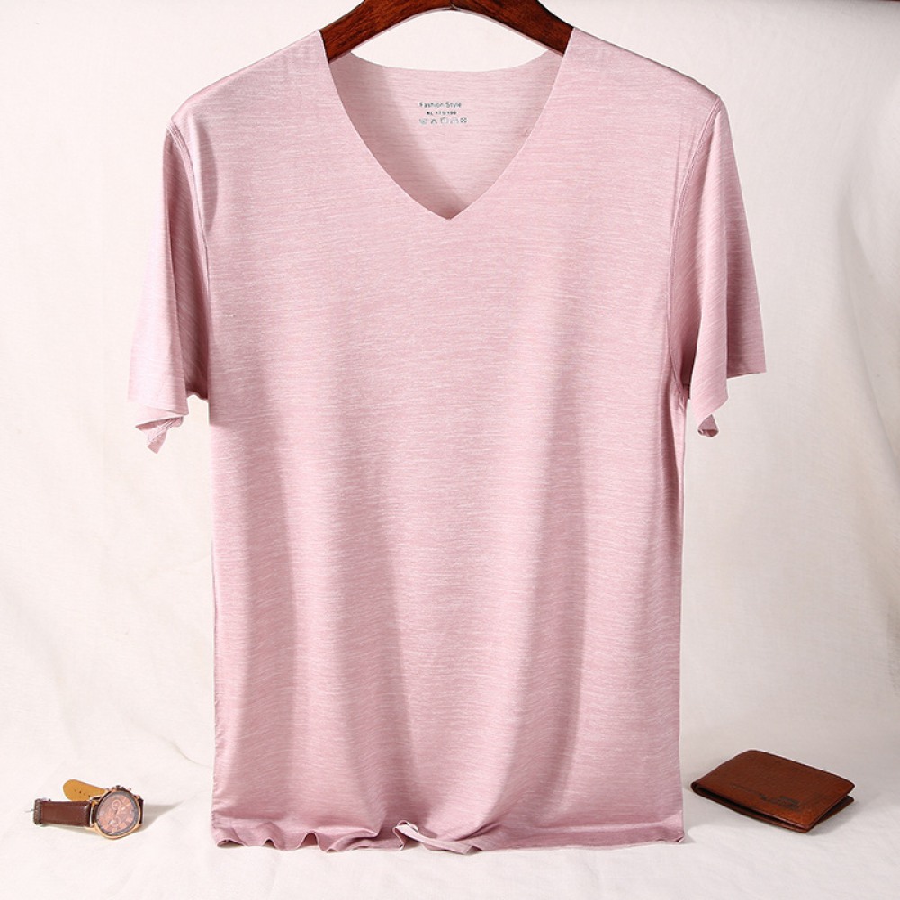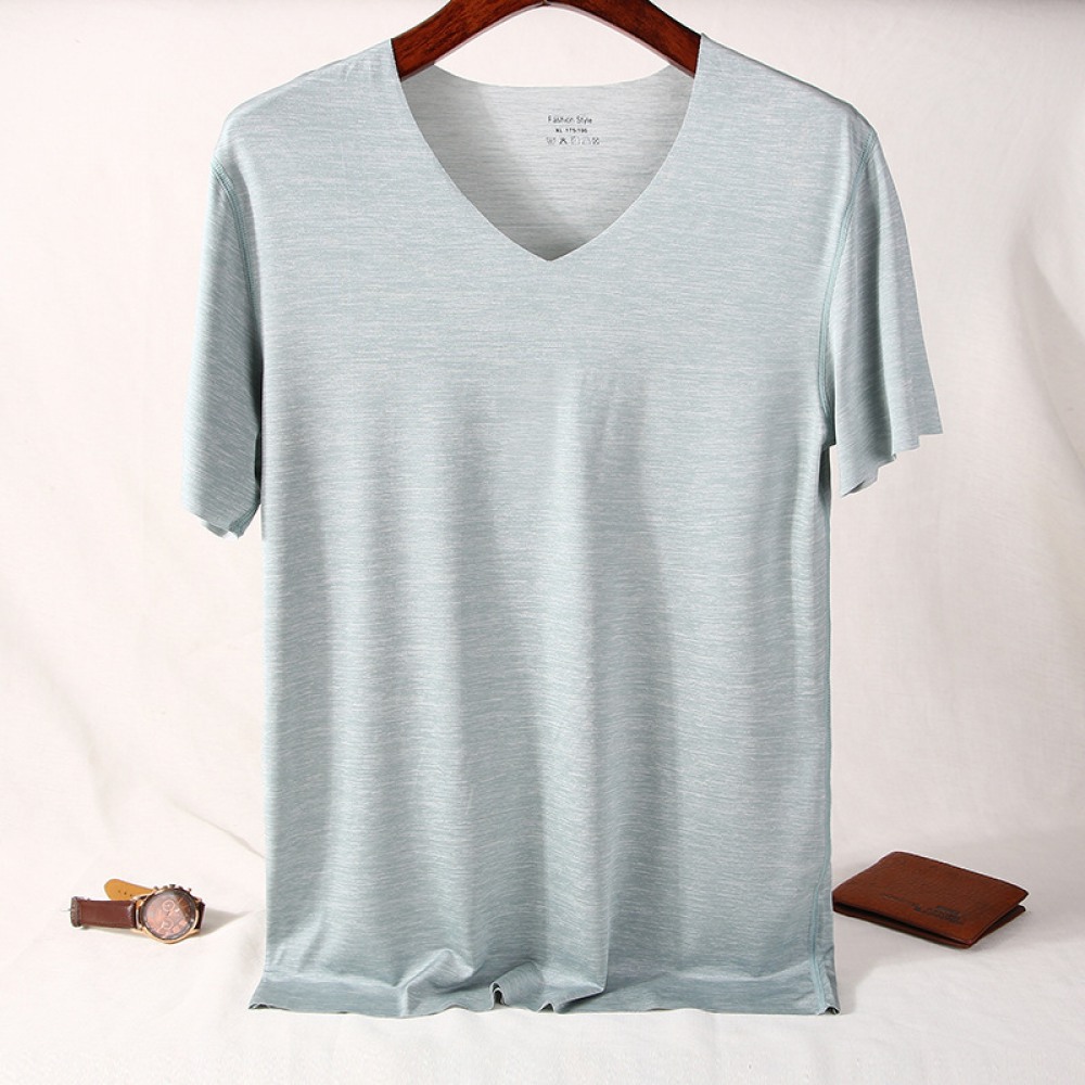 Pure Color V-Neck New Year Summer New Simple Seamless Ice Silk Men's Quick-Drying T-Shirt Short-Sleeved Men's T-Shirt